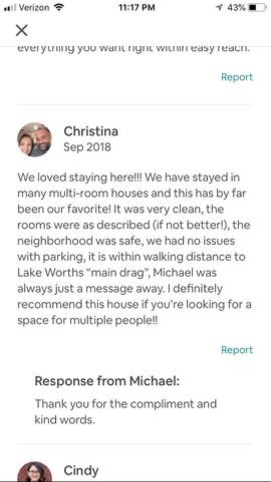 Walking distance to Lake Ave & all of the fun restaurants, bars, chic shops, relaxing spas & beauty shops. Just a 15 min bike ride to the Lake Worth beach, pier & casino. 4 bedrooms, 2 baths & 1 awesome backyard for entertaining & relaxing. This 1920’s classic Mango Grove home is filled with charm & character with all of the modern amenities & luxuries for an awesome vacation. Mins to: 2 Lake Ave 6 Lake Worth Beach 15 Palm Beach 20 West Palm Beach Airport 40 Ft Lauderdale Airport 60 Miami